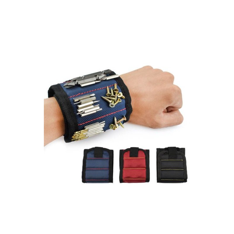 Praktikus karkötő ezermesterek számára, amely a belevarrott mágneseknek köszönhetően megtartja a csavarokat, szegeket, anyacsavarokat és rajzszögeket is. Tépőzárral zárható, ennek köszönhetően bármilyen kéz méretéhez hozzáigazítható.