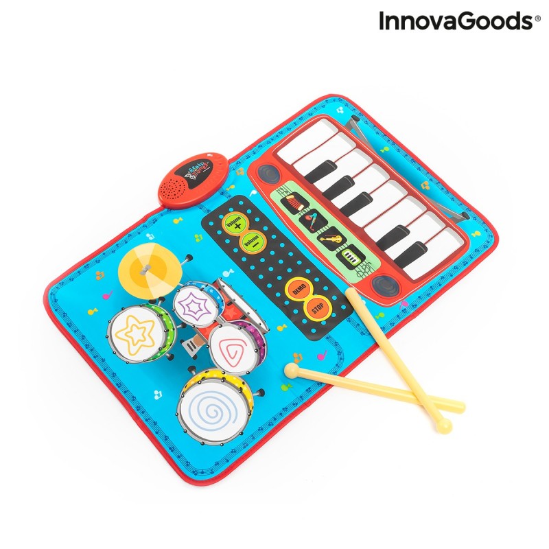 Interaktív zeneszőnyeg, melynek köszönhetően akár 4 hangszert is megismerhet a kis zenész! Zongora, hegedű, harmonika, szaxofon vagy dob, ez csak a választástól függ. A szőnyeg csúszásmentes, be-/kikapcsoló gombbal és hangerőszabályzóval rendelkezik, és bármilyen felületre elhelyezhető. Ha esetleg elfogy a fantáziája, nem kell kétségbe esni, mert a szőnyegben több elmentett előre lejátszott dallamot találunk.