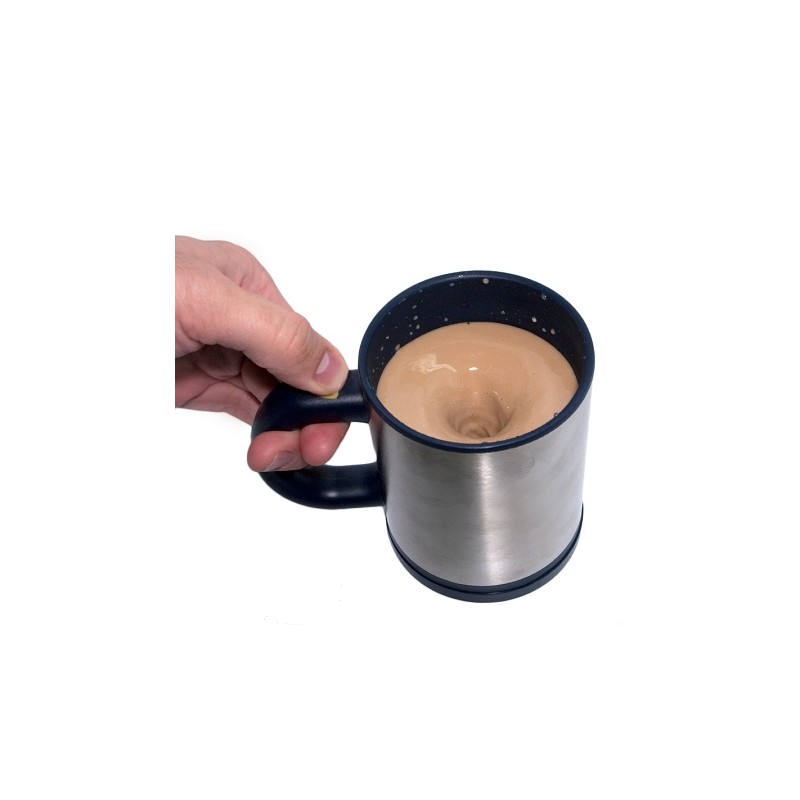 Önkeverő bögre az igazán lustáknak. Elég megnyomni a gombot, és a bögre keveri önmagát. Ne gürcöljön, de fölöslegesen se koszolja a kiskanalat, számít!