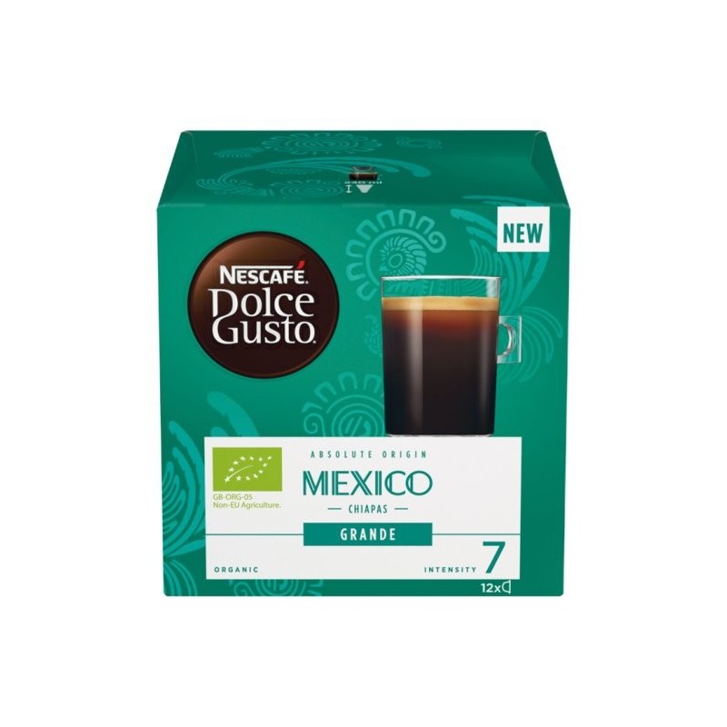 A csomag 12 kapszulát tartalmaz 12 csésze NESCAFÉ® Dolce Gusto® Mexico Chiapas Grande kávéra.