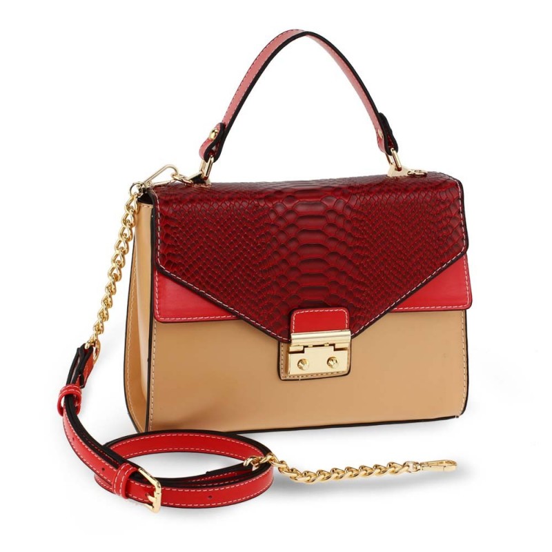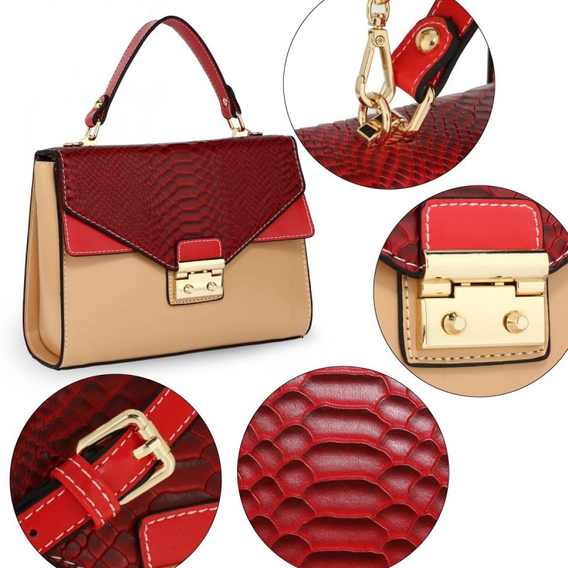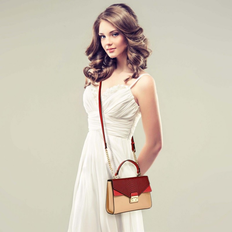 Gyönyörű és elegáns bordó-bézs kézitáska minőségi ökobőrből az Anna Grace London márkától. Elegáns, időtlen dizájn, amely ízlésesen kiemeli személyiségét és kiegészíti öltözékét. A fő zsebet egy telefon- és kozmetikai zseb, valamint egy cipzáras zseb egészíti ki az értékek számára. A kézitáska kézben vagy vállon viselhető. Méretei (sz x h x m) 24 x 18 x 9 cm, a pánt 10 cm magas.