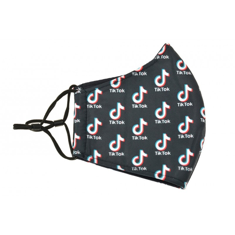 Kényelmes, többször használható szövet szájmaszk TikTok logóval. Mosható és többször használható. Ráadásul állítható a fülre való fűző.